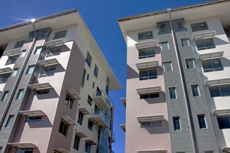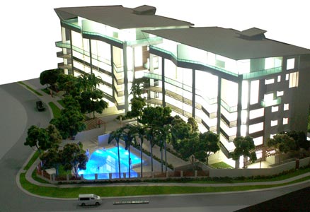 Two seven storey apartment towers housing 44 apartments at Alexandra Headland, Sunshine Coast.