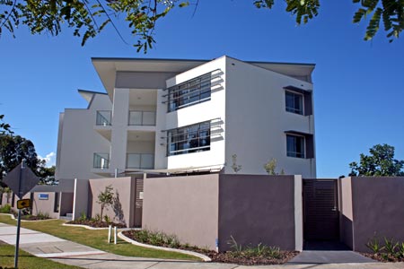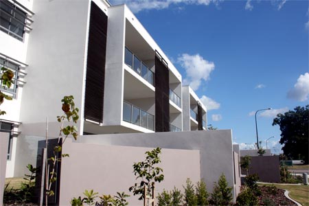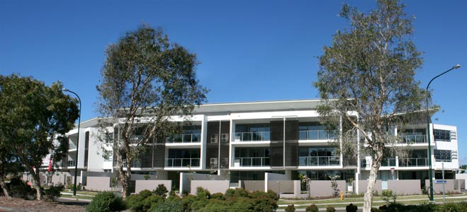 A staged apartment development at Pelican Waters Sunshine Coast. The development is set within an integrated landscaped environment with BBQ area, lap and resort pools and delightful outdoor spaces.