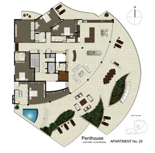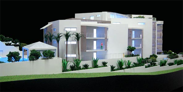 A new luxury 25 apartment complex at Yeppoon, central Queensland on a steep headland site overlooking the Pacific Ocean.