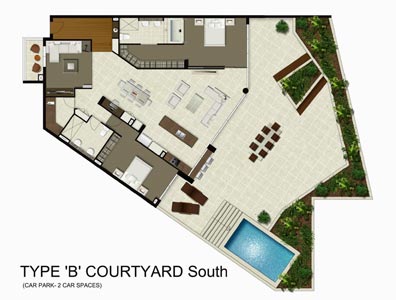 The development is set within an integrated landscaped environment with recreation area, pool, spa and gym complex and generous outdoor courtyards and terraces.