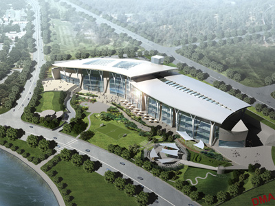 Our concept is derived from Mao Zedong's statement "women hold up half the sky". A large curved roof (the sky) is supported by elegant freeform columns (women) providing a sheltered space for women and children's activities below. Skylights in the roof represent the opening of the sky to let in light (knowledge).