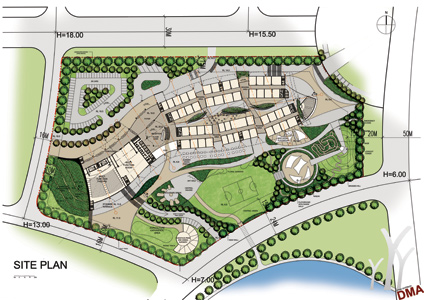 DMA were invited to enter an international design competition for this project in 2011. The sloping site overlooks Bohai bay to the south and we located the building to take advantage of this aspect and shield outdoor spaces from the cold northern winds.
